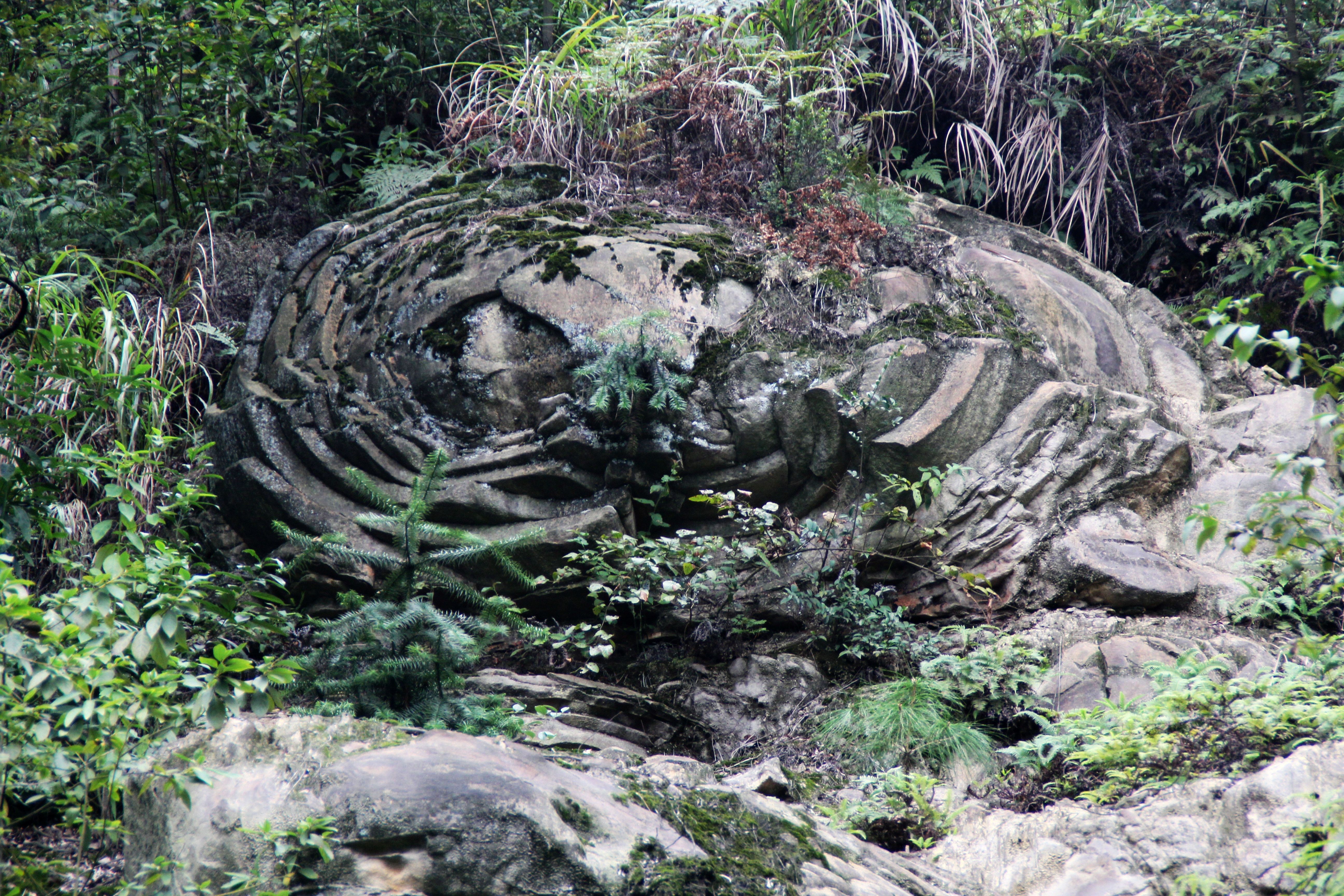 石莲花开多处散布于九凤山上,其中青龙山南坡山腰峭崖较为集中,海拔520—550米,是罕见的自然奇观。石莲花开本为多尊裸露崖壁的圆形紫砂岩和砂页岩,整体外观酷似佛头或人面,惟妙惟肖;但每尊岩石都呈现出明显的分层,少则七八层,多则二十余层,像极了正在绽放的荷花,花瓣层层叠叠,石莲花开因此而得名。据考证,石莲花开形成于中生代白垩纪时期,距今大约1.37亿年。